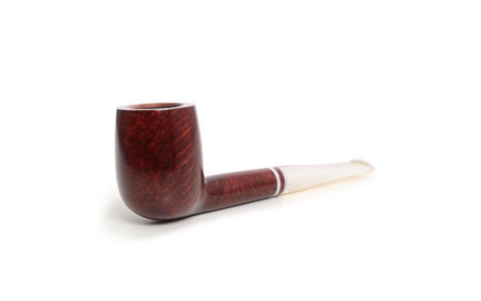 Die Avorio-Pfeife ist mit einem eleganten, weiß geäderten Acrylmundstück auf einem bordeauxfarbenen Bruyèrekopf in glatter Ausführung ausgestattet. Ein Zusammenspiel von kleinen Ringen macht das Ganze sehr leicht und elegant. Das Modell 111 KS ist in aller Munde. Mit seinem zylindrischen Kopf und Schaft hat es eine sehr geräumige Brennkammer und ist für jede Art von Pfeifenraucher geeignet.