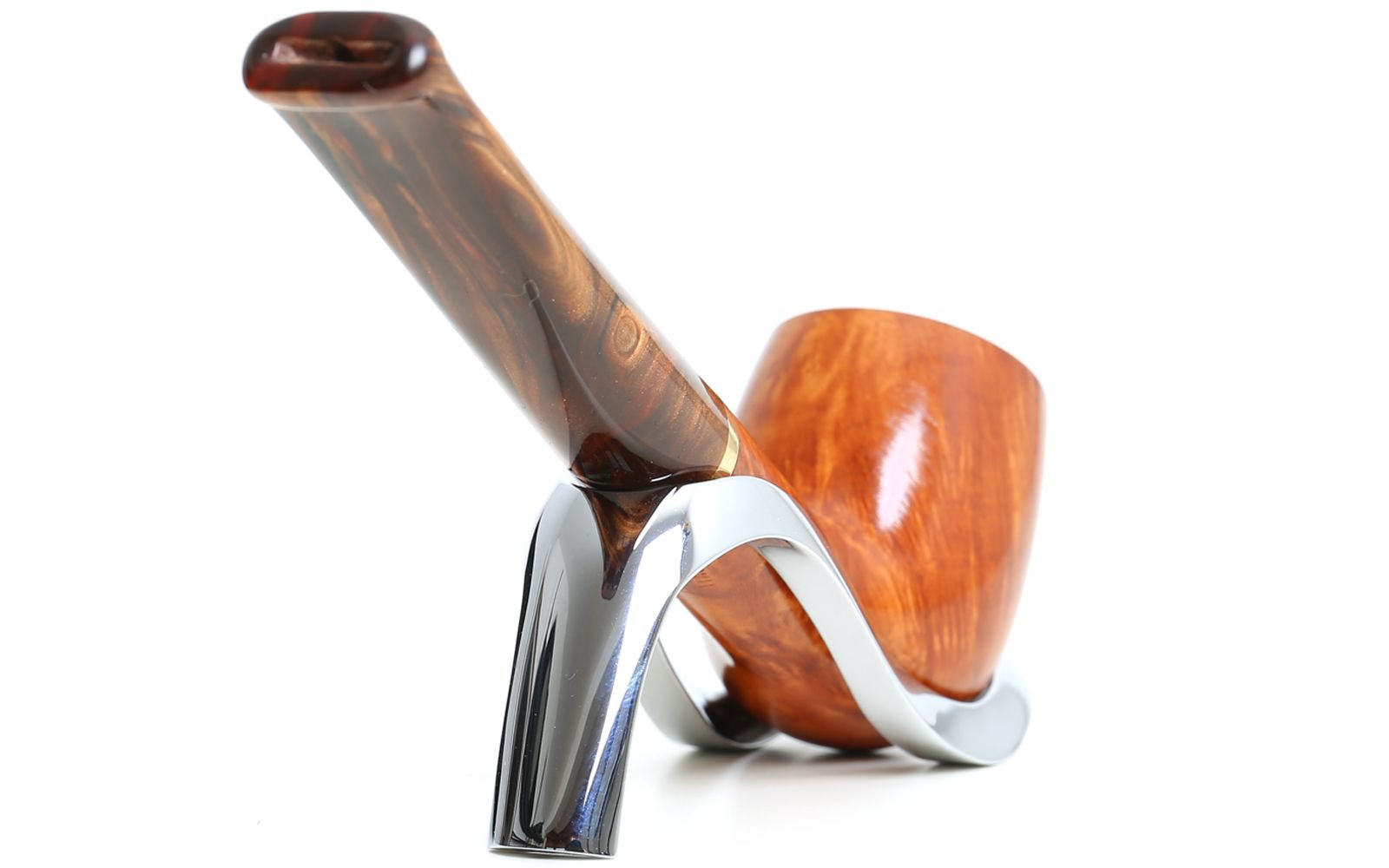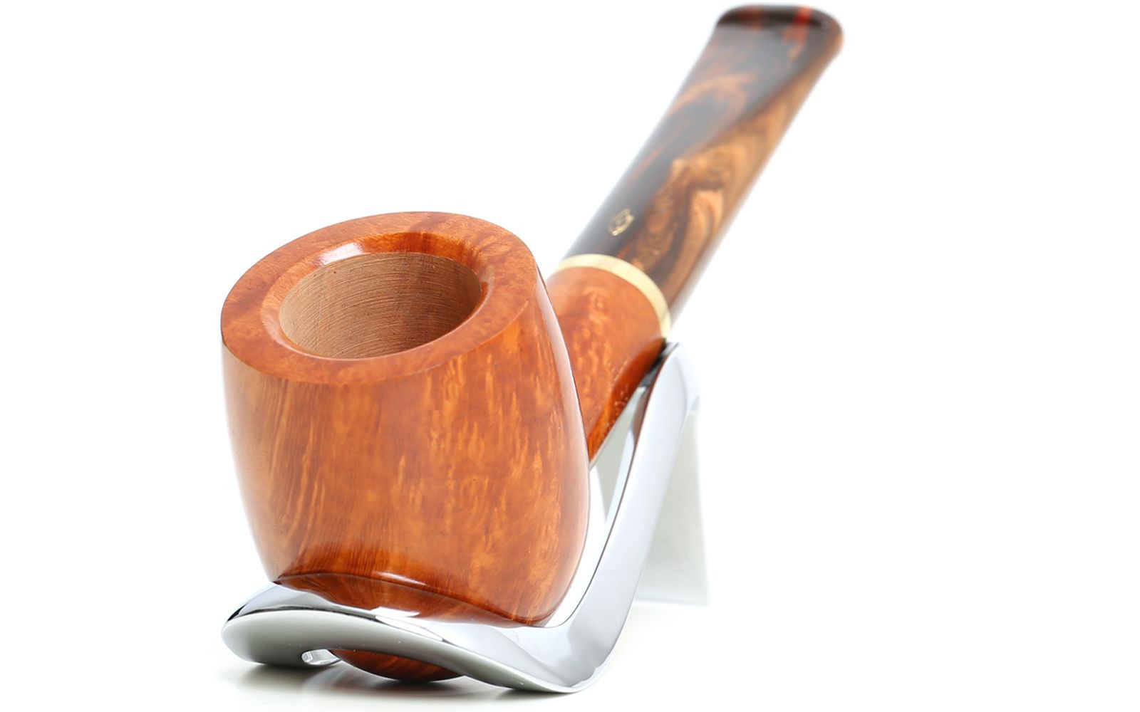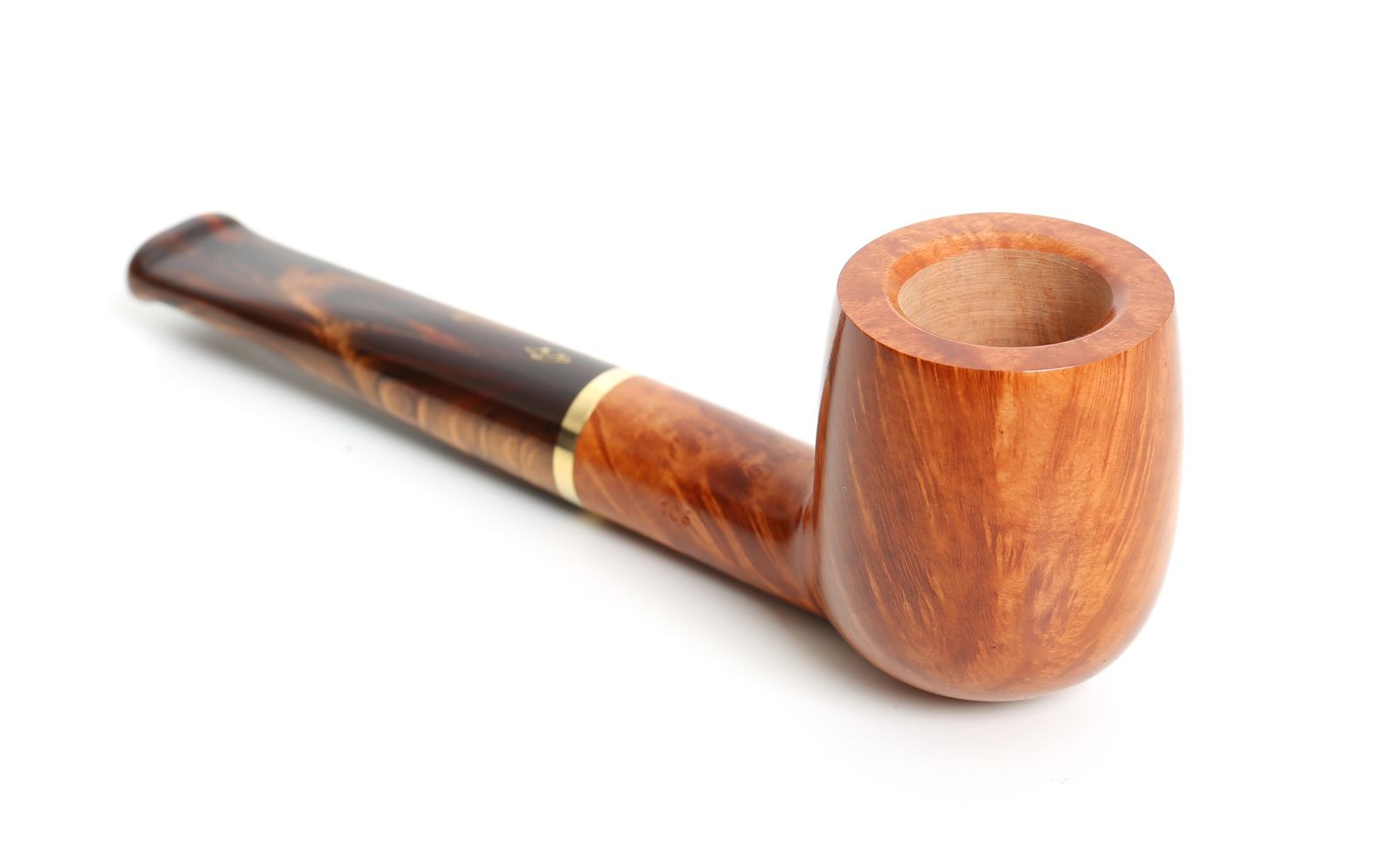 Die Pfeife ist in einer glatten, natürlichen Ausführung gefertigt und wird in 5 verschiedenen Modellen angeboten. Das Mundstück ist aus Melange-Acryl in warmen Brauntönen gefertigt, und ein Messingring verleiht der Pfeife einen Hauch von Klasse.