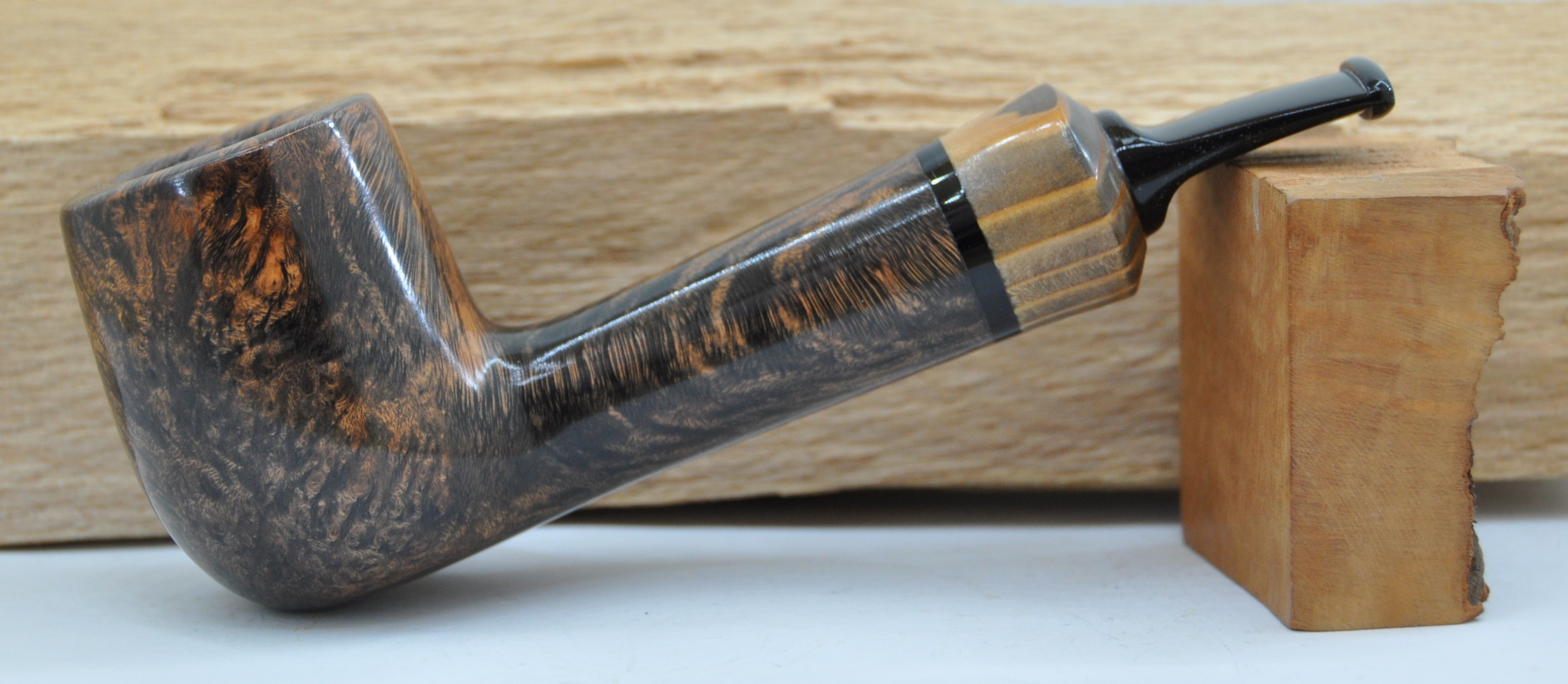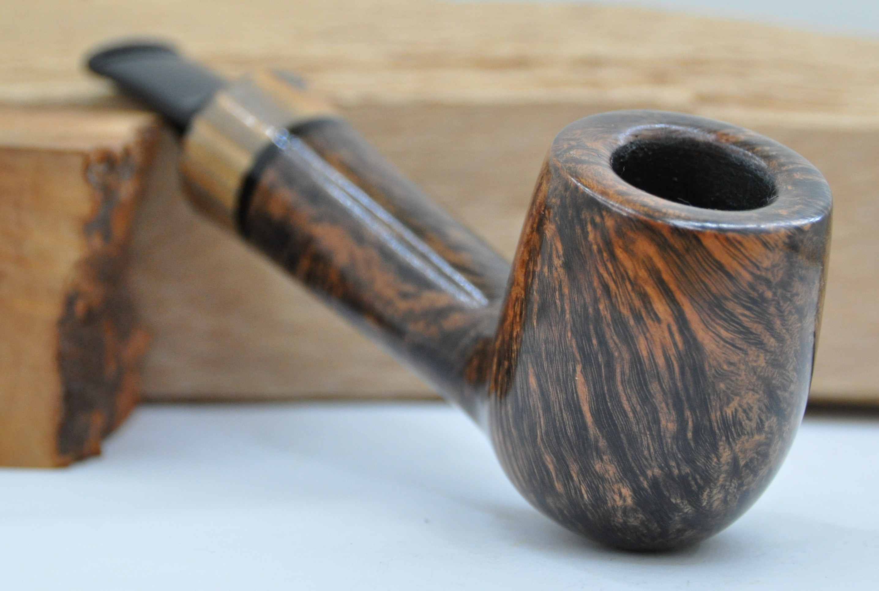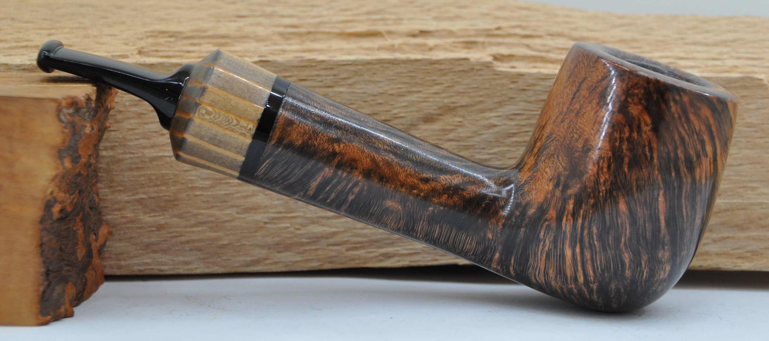 Pfeife aus Bruyère, mit 9 mm Filter, gerade. Mit einem Ring aus eingefärbter Lärche.