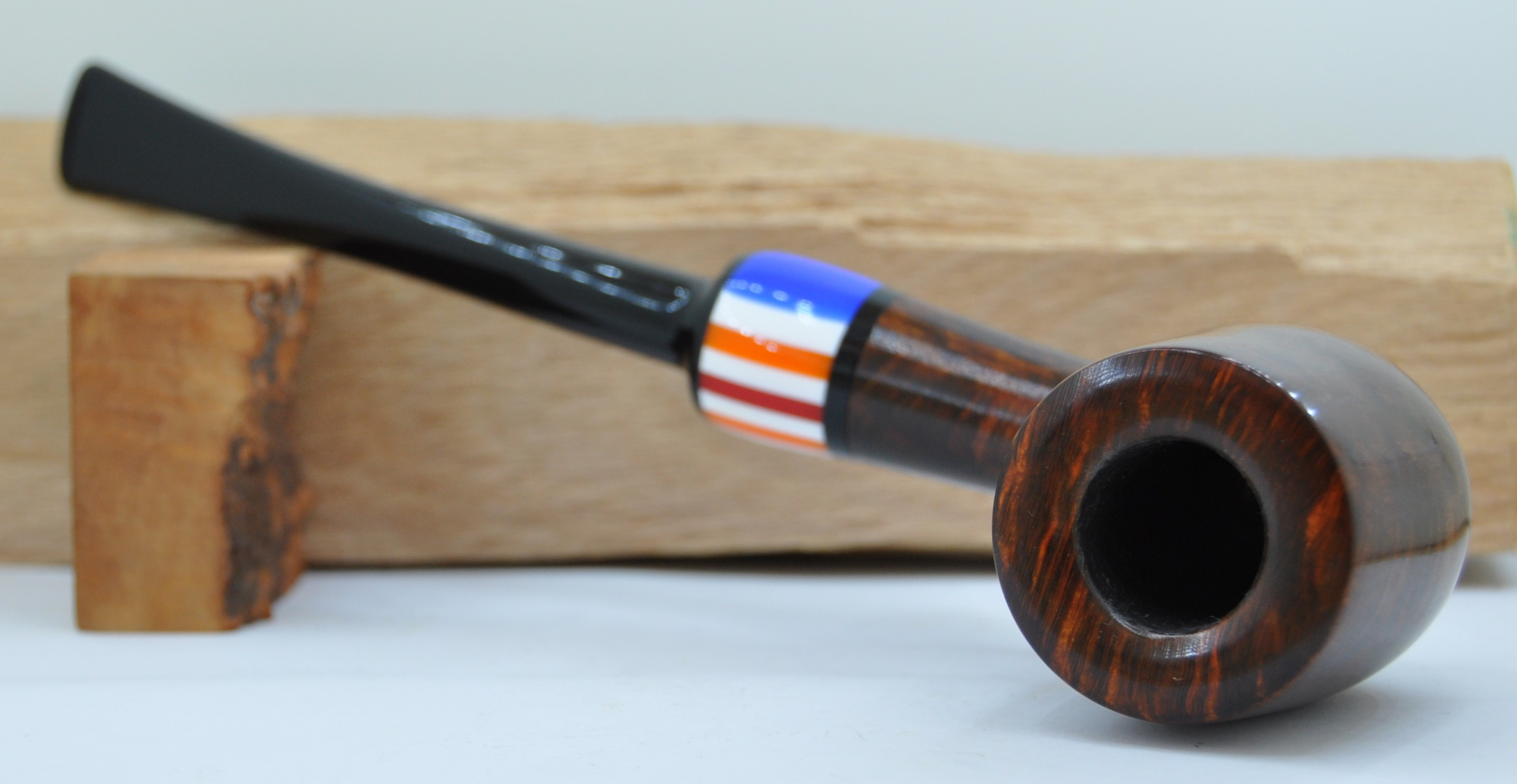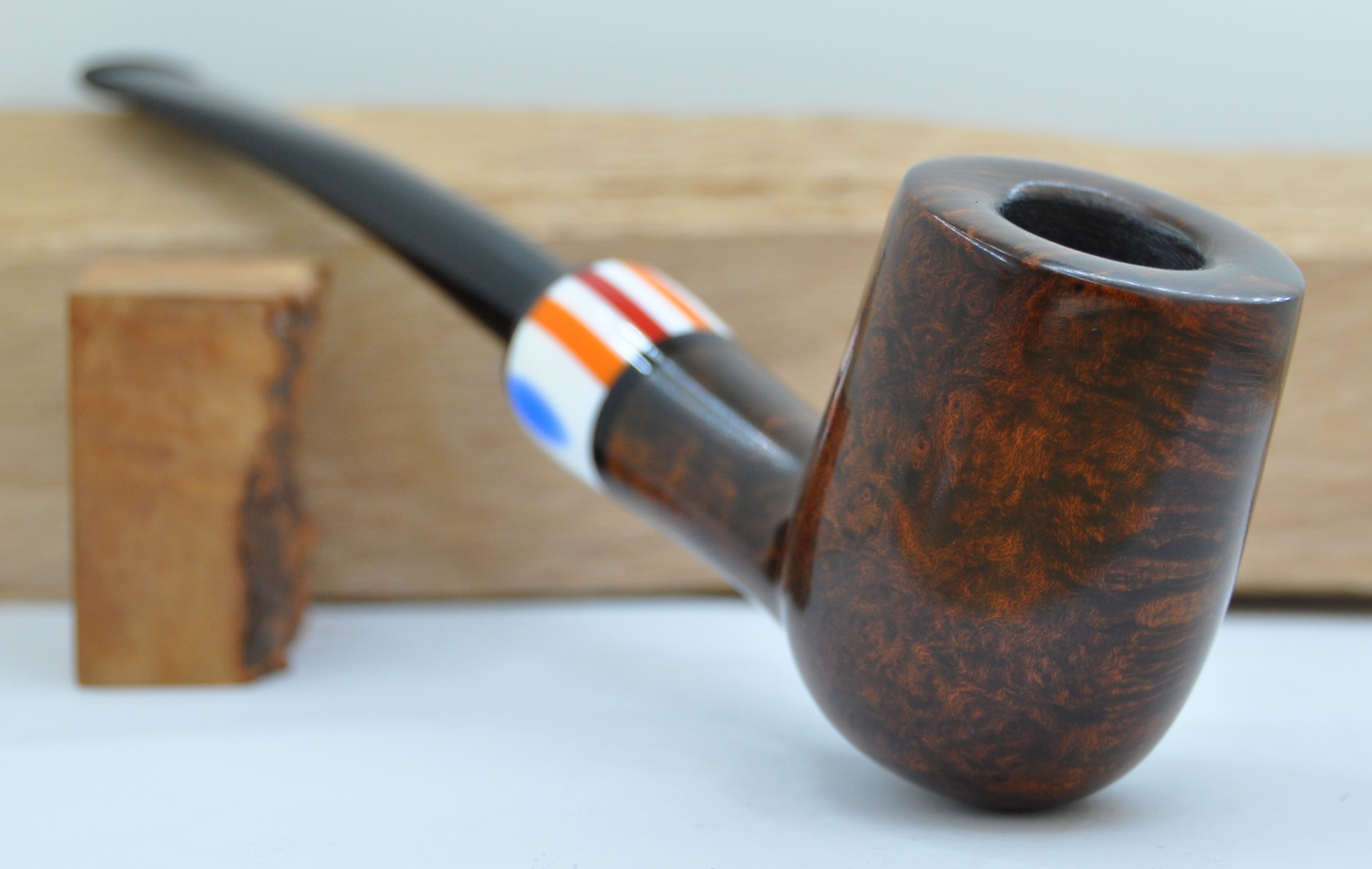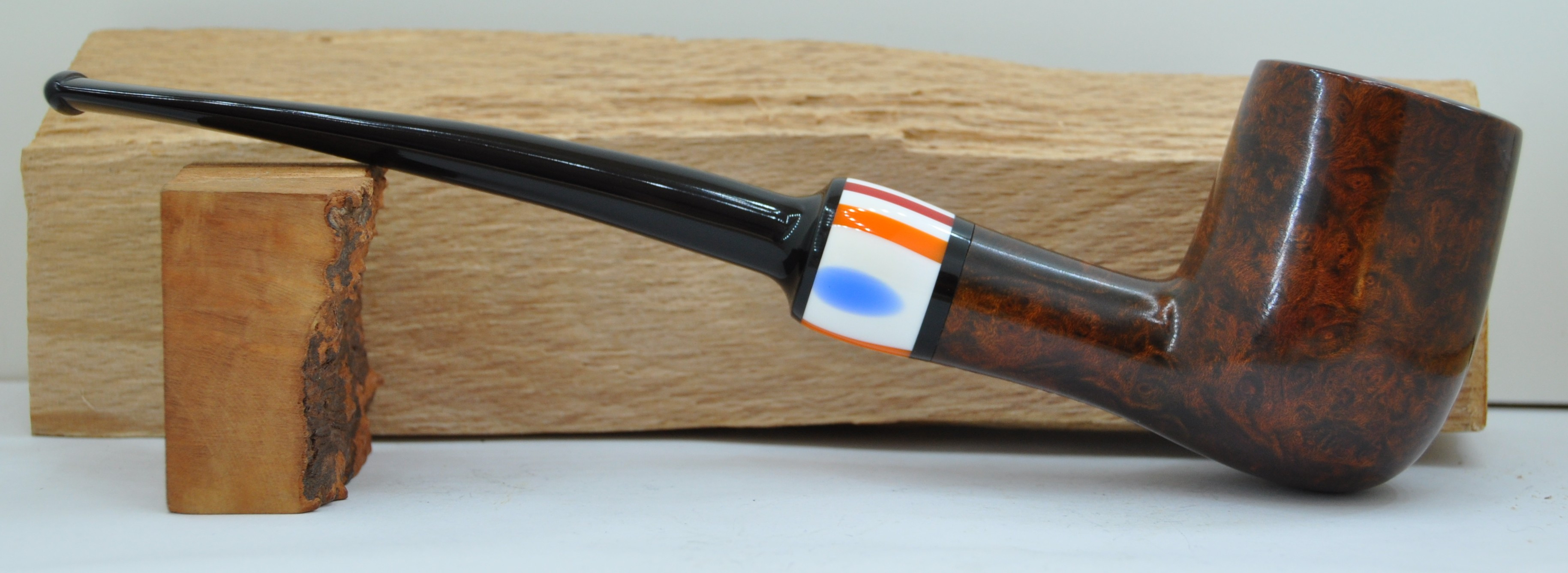 Pfeife mit 9 mm Filter, leicht gebogen. Mit ein Ring aus Acryl am Mundstück.