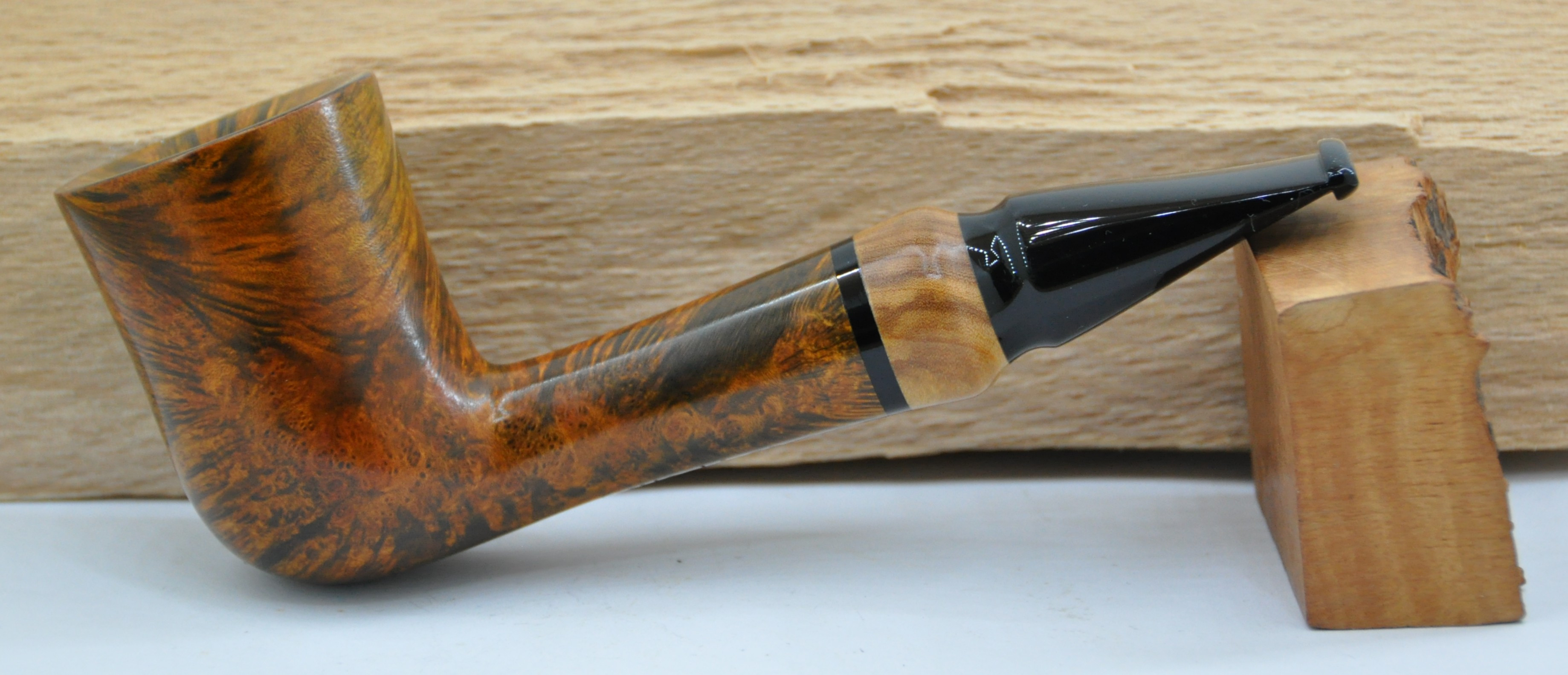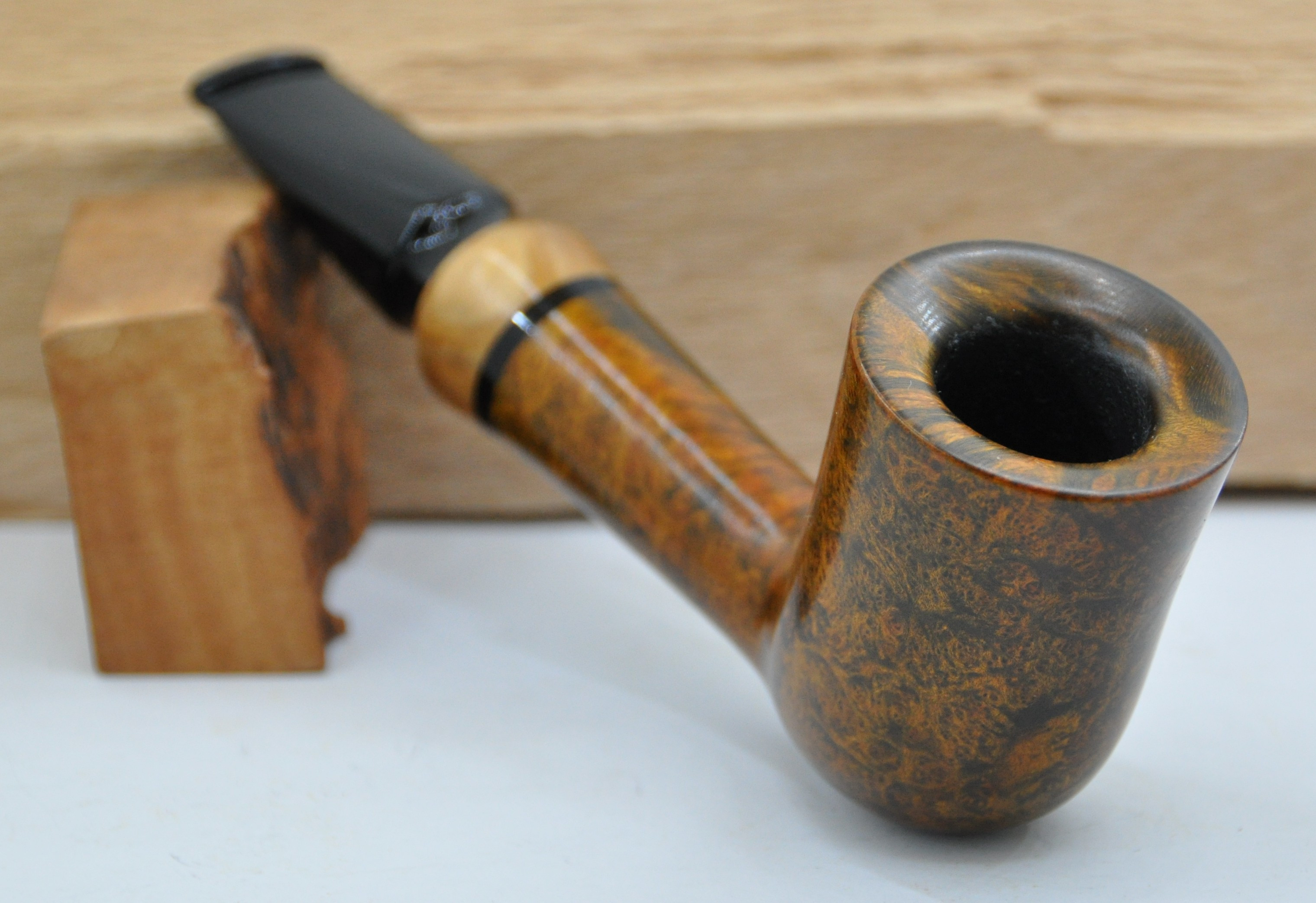 Pfeife aus Bruyèreholz, mit 9 mm Filter, gerade. Mit einem Ring aus Olivenholz am Mundstück.