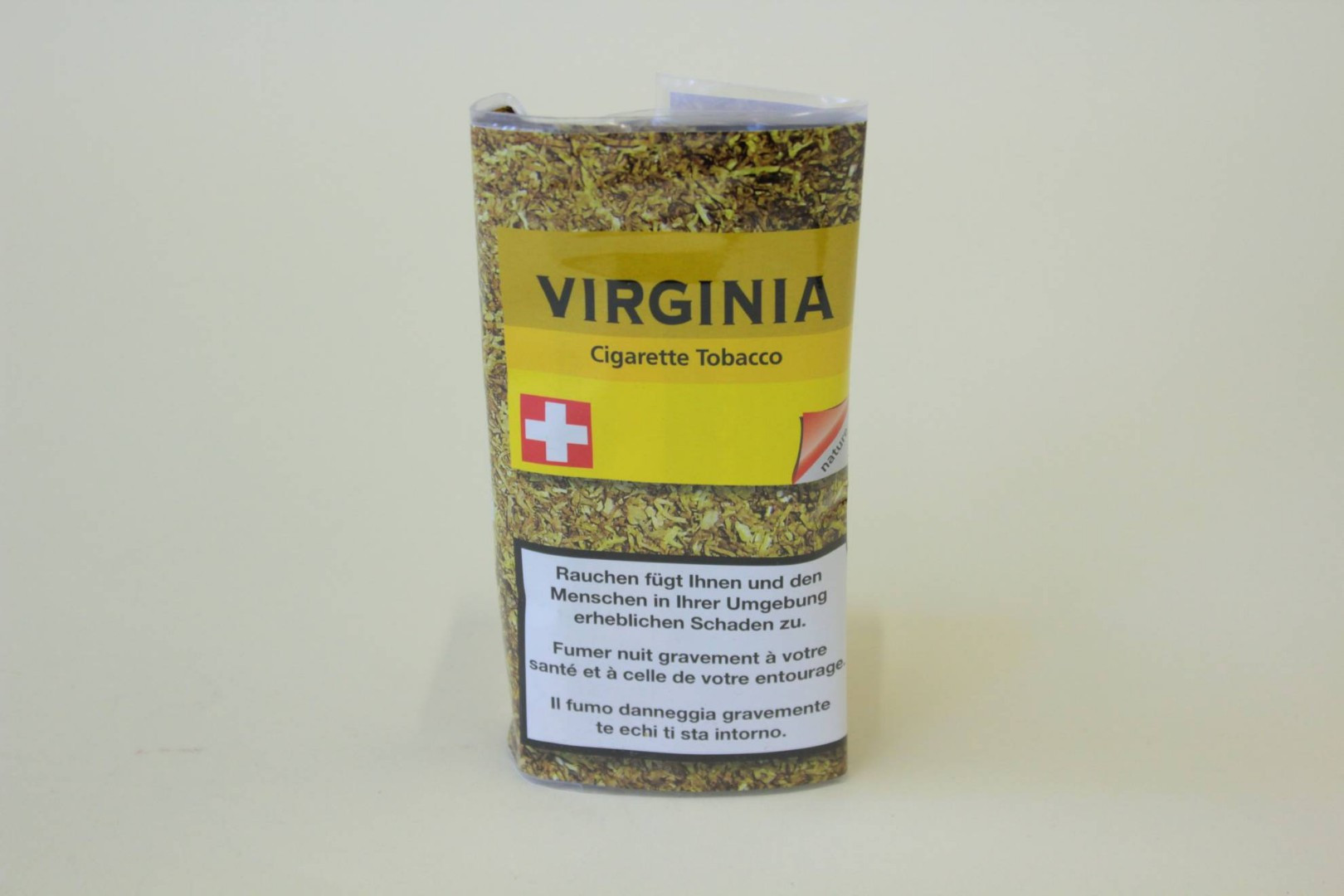 Virginia Feinschnitt nature, hergestellt aus wenig Schweizer Burley und ein grosser Anteil an Schweizer Virginiatabak (100% Schweizer Anbau).