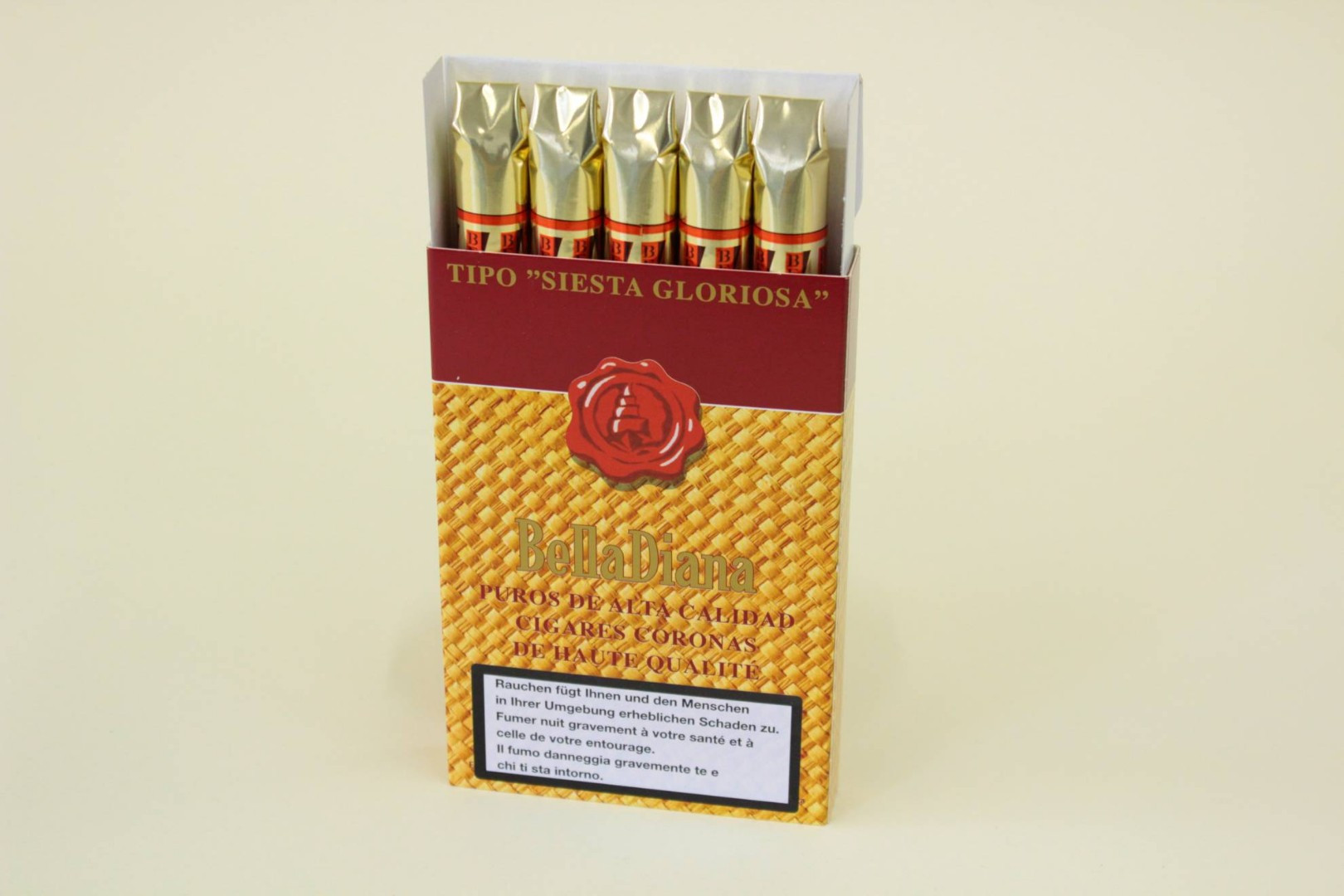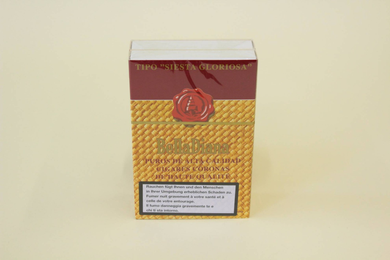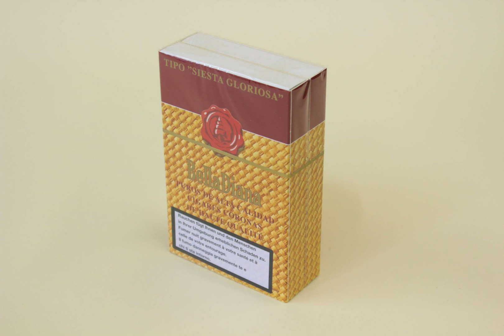 Helle, speziell ausgesuchte Tabake, reich an Aroma, doch mild und geschmeidig, so präsentiert sich unsere Bella Diana.100% Tabak.