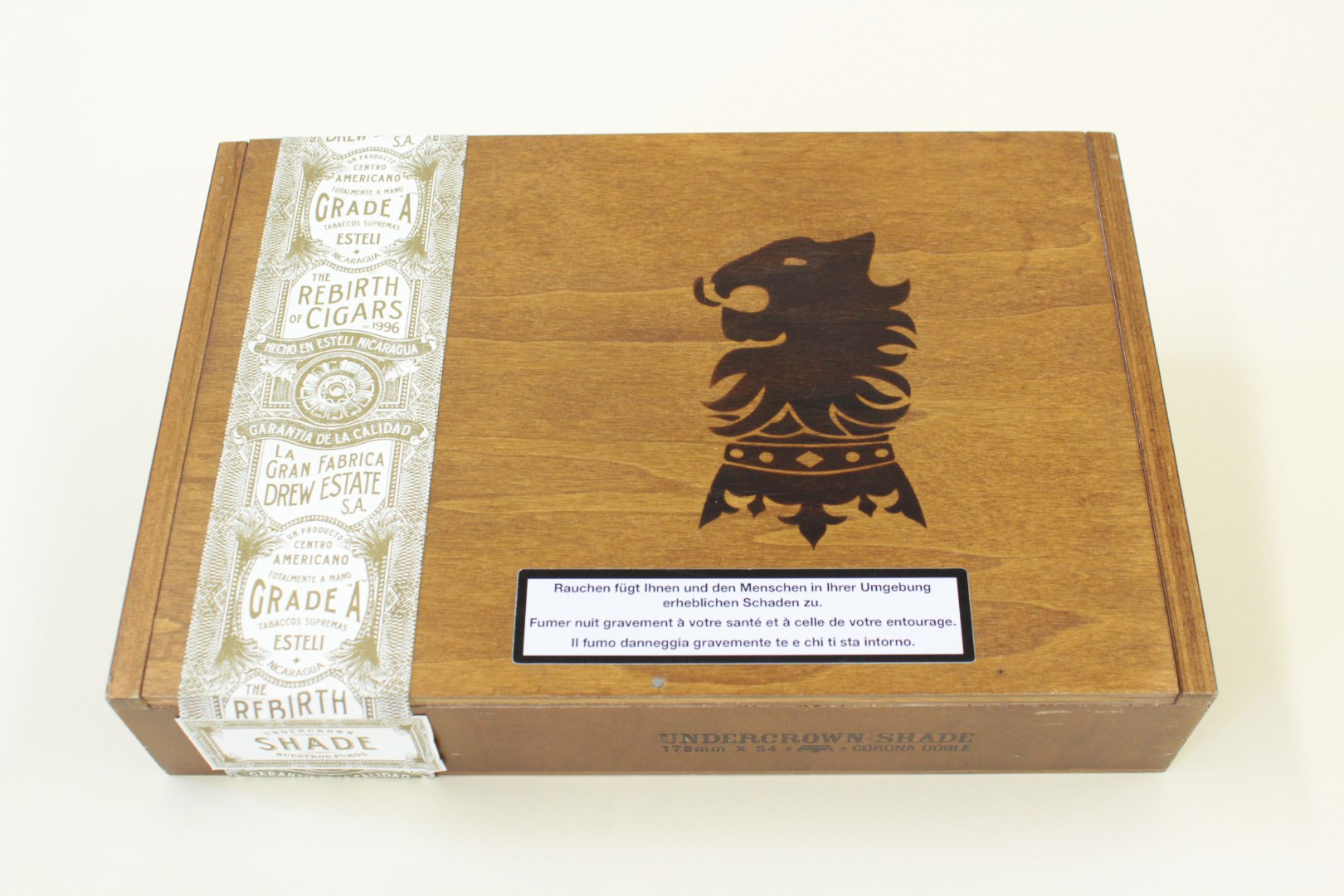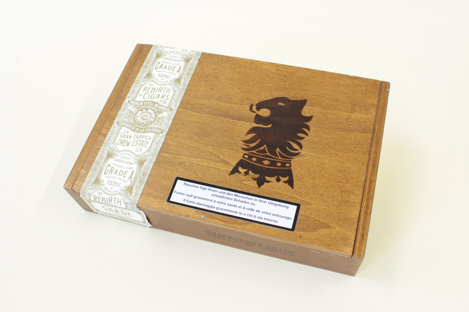 Die Undercrown Shade ist geschmacksvoll und sehr harmonisch. Das Deckblatt ist ein Ecuador Connecticut und darunter befndet sich ein Sumatran Umblatt. Der Füller besteht aus Dominican criollo 98’ und Nicaragua Corojo und Criollo. Der Blend ist vollmundig und komplex, dennoch sehr schön harmonisch und beinhaltet Noten von Toast, Nuss, milden Gewürzen und ist sehr cremig mit einer schönen Süsse, welche den Blend perfektioniert. Diese milde Zigarre wird auch Afcionados überzeugen, die lieber kräftigere Zigarren geniessen.
