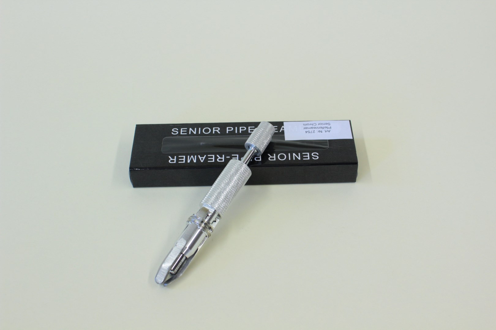 Das praktische Pfeifenreinigergerät Typ Senior aus pflegeleichtem Chrom eignet sich zum gründlichen Entfernen von hartnäckigen Verschmutzungen im Pfeifenkopf und im Pfeifenholm.